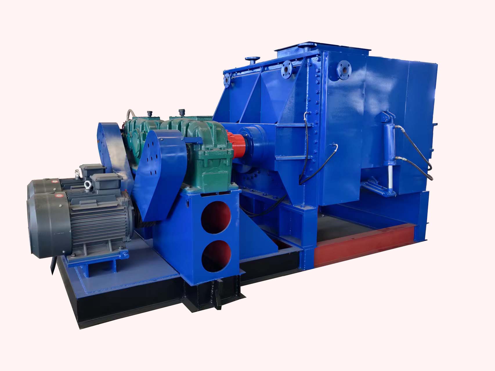 (6)碳素捏合機的上蓋為液壓啟閉,軸兩端設有調心滾子軸承,十分便捷;