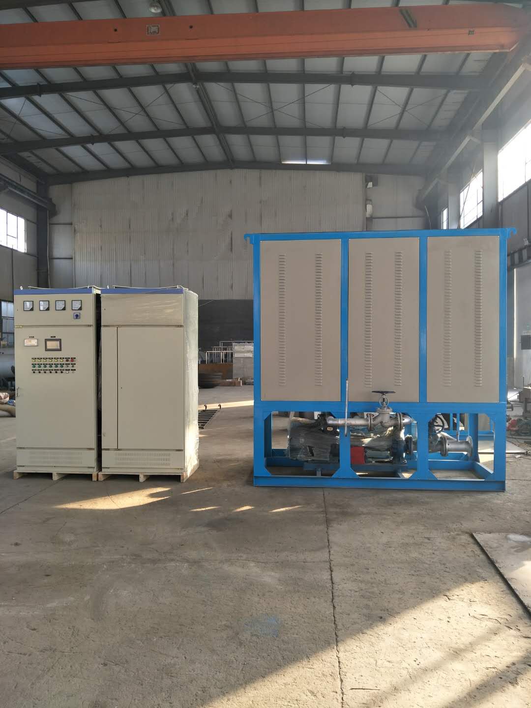 電加熱有機熱載體鍋爐是一種新型、安全、高效節(jié)能,低壓(常壓下或較低壓力)并能提供高溫熱能的特種工業(yè)爐,是一種以電為熱源,導(dǎo)熱油為熱載體,利用循環(huán)油泵強制液相循環(huán).將熱能輸送給用熱設(shè)備后.繼而返回重新加熱的直流式特種工業(yè)爐,如此周而復(fù)始,實現(xiàn)熱量的連續(xù)傳遞,使被加熱物體溫度升高,達到加熱的工藝要求。 電加熱有機熱載體鍋爐具有結(jié)構(gòu)緊湊、體積小、重量輕、安裝操作簡便、加熱升溫快、無環(huán)境污染等特點,電腦自動控溫,可在較低的工作壓力下獲得較高的工作溫度。